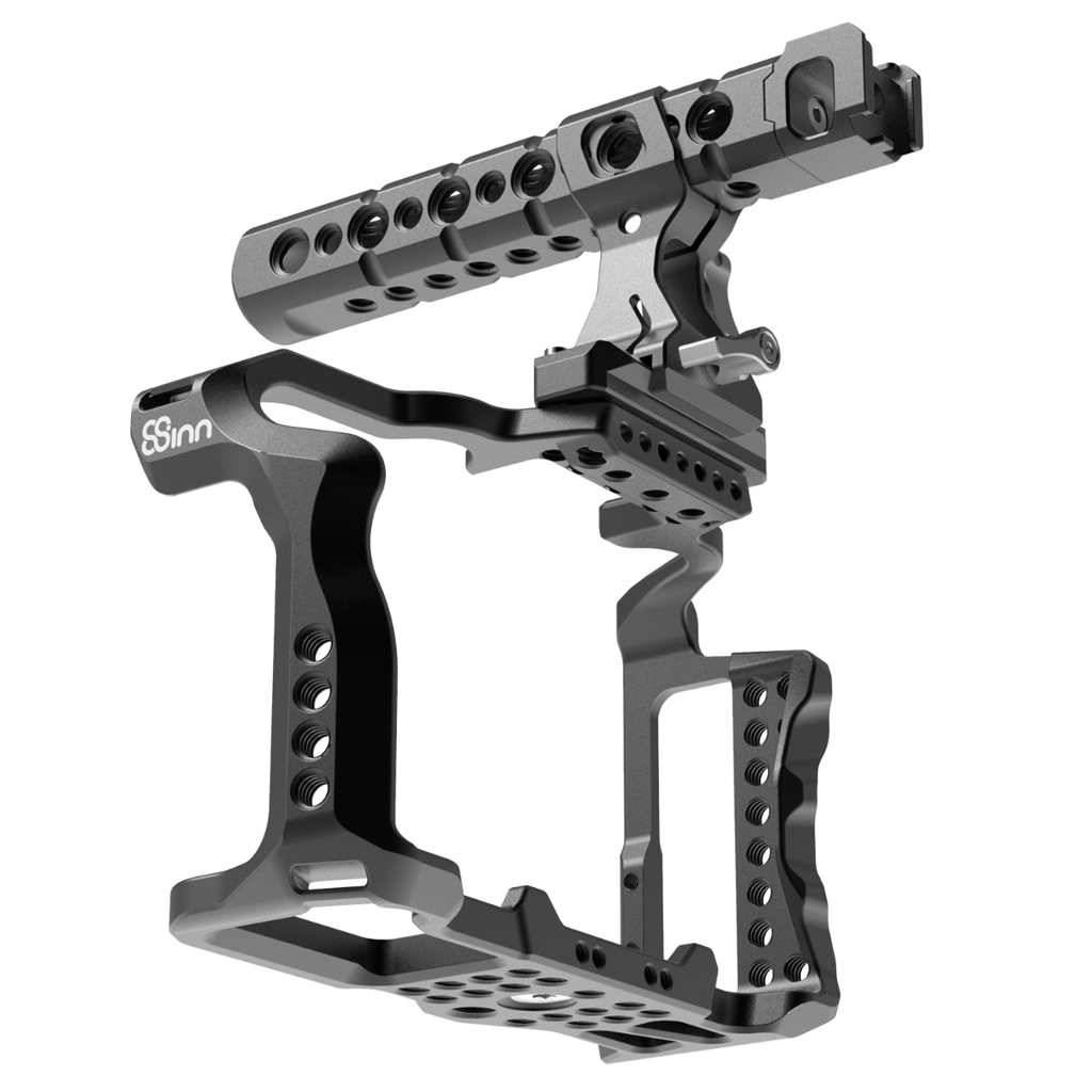 This page presents you with the set of two 8Sinn products (also sold separately). Cage and top handle are essential for filmmakers. Adding peripheral accessories is a lot easier if you have lots of various mounting points at your disposal.