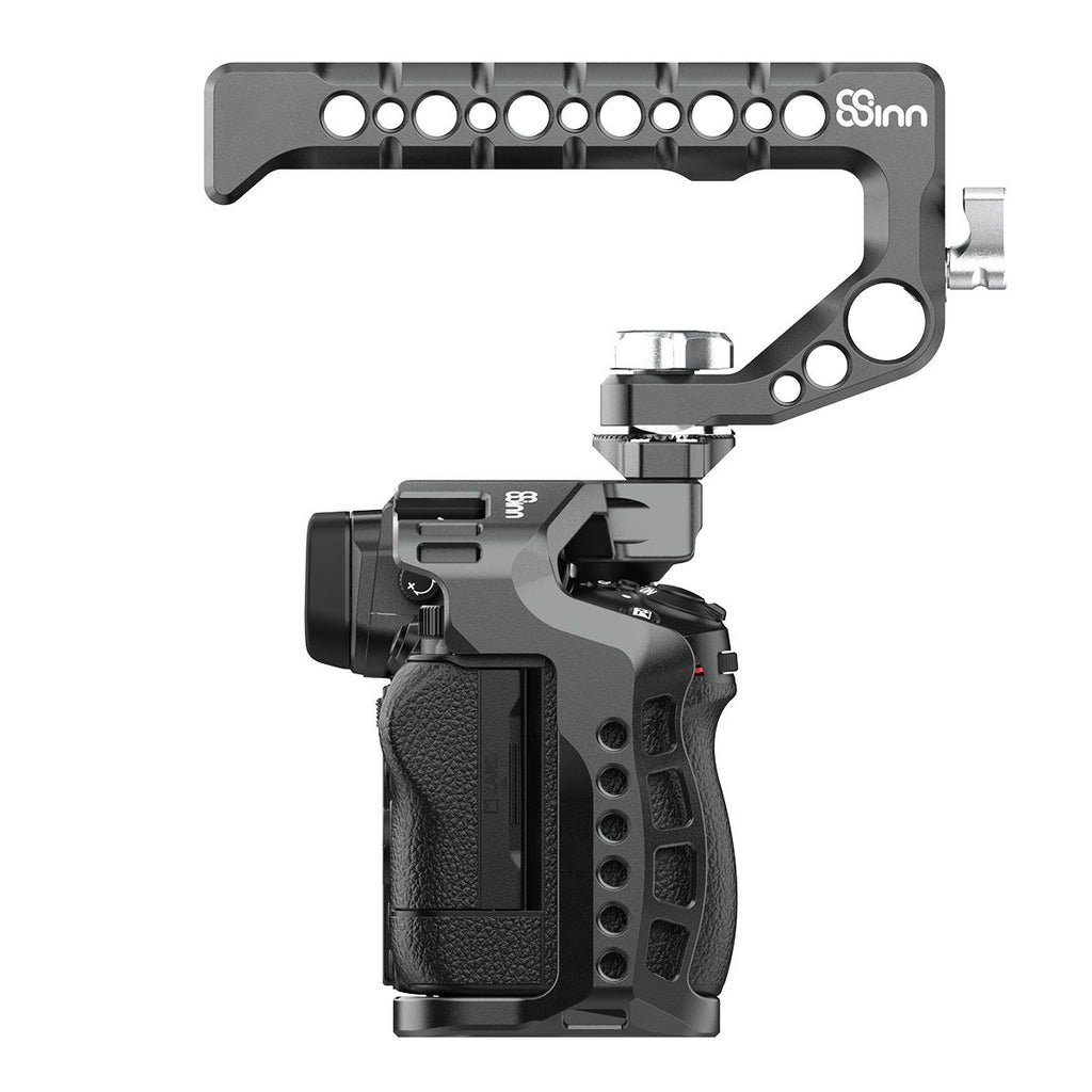 8Sinn Top Handle Scorpio is an aluminum made handle, thus it will stand the test of time. The range of accessories that can be attached to it is enormous. It’s covered with 1/4” and 3/8” threaded openings all over it. What's more, the Scorpio handle is equipped with four cold shoe mounts and 15mm rod opening to allow you to expand even more. It is attached to the cage with the help of a M6 screw which allows 360 degree rotation. Thanks to this, you can adjust the handle’s position to your preference.