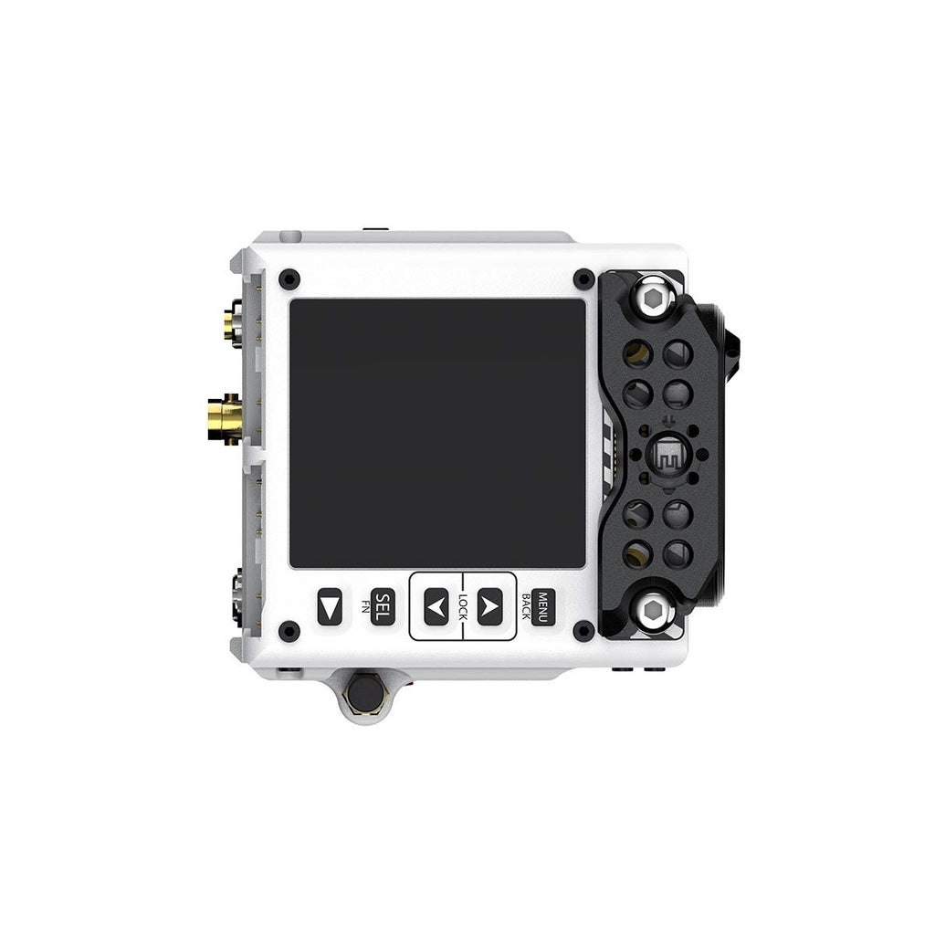 8Sinn Top Plate for the RED® KOMODO™ is an autonomic part. It can be used together with the 8Sinn cage or it can be used alone. It's equipped with three different kinds of threads - all standard for camera accessories. It has been designed to perfectly fit the camera body and not disturb any part of it.
