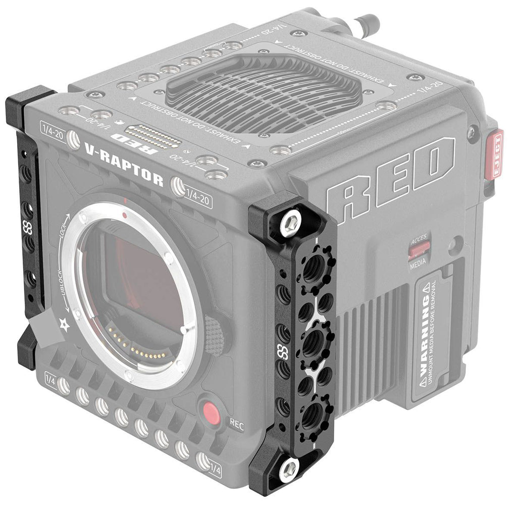 8Sinn Right Side Plate for RED® V-Raptor camera is a left/right side plate. That is it can be mounted not only on the camera’s right but also left side. One plate is attached to the camera by 2 screws. The only two places where the plate adheres to the camera’s body is the place where screws are attached. 8Sinn Right Side Plate is equipped with many mounting points: 1/4" as well as 3/8” Arri locating points. If needed, 3/8" openings can be easily transformed into 1/4" with the use of a reduction screw, also available at the 8Sinn store.