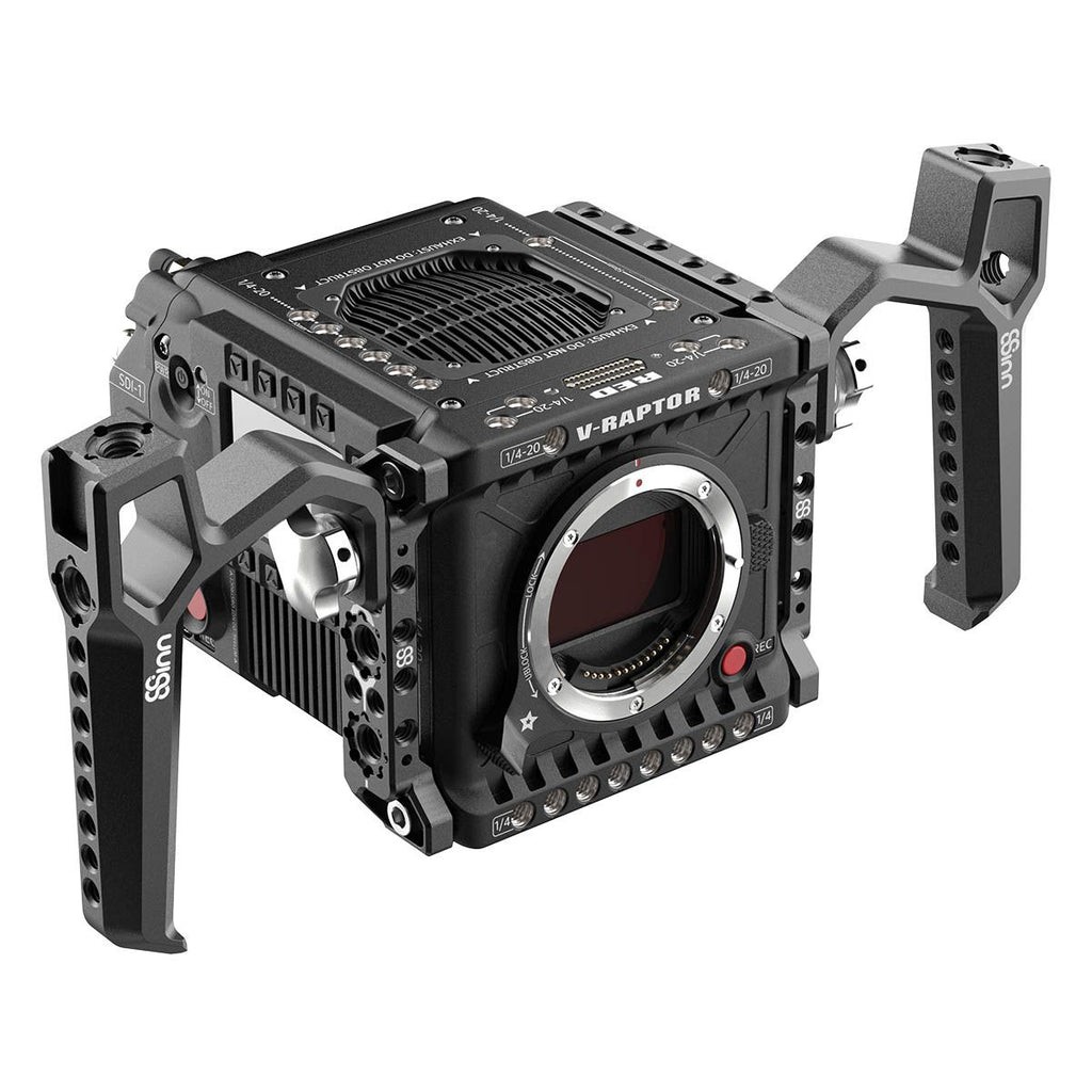 This page presents a set of several 8Sinn products that are also sold separately. 8Sinn reversible right side plate dedicated to the RED® V-Raptor camera is a left/right side plate. That is it can be mounted not only on the camera's left but also right side. The plate is attached to the camera by 2 screws. The only two places where the plate adheres the camera’s body is the place where screws are attached. Such solution prevents the camera from unwanted damage by the use of too long screws. 8Sinn RED® V-Raptor plate is equipped with many mounting points: 1/4" as well as 3/8” Arri locating points.