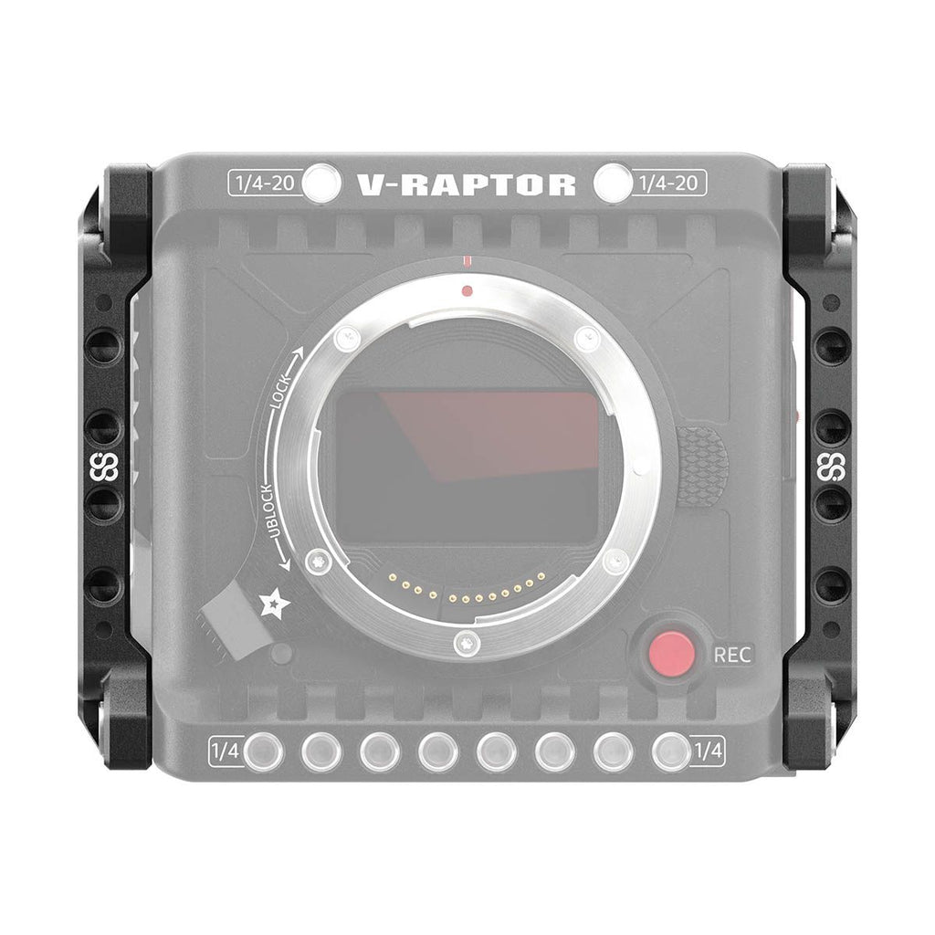 Set of two products for equipping both sides of the V-Raptor camera. 8Sinn reversible side plate dedicated to the RED® V-Raptor camera is a left/right side plate. That is it can be mounted not only on the camera’s right but also left side. The plate is attached to the camera by 2 screws. The only two places where the plate adheres to the camera’s body is the place where screws are attached. Such a solution prevents the camera from unwanted damage by the use of too-long screws. 8Sinn RED® V-Raptor plate is equipped with many mounting points: 1/4" as well as 3/8” Arri locating points.