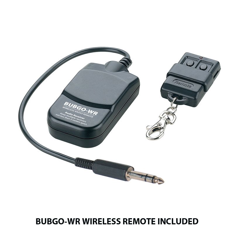 Specifications• Portable high output bubble machine • Creates hundreds of bubbles per minute • Durable plastic casing with EZ-Access front fluid tank • 1 Liter Fluid Tank • Large high velocity fan makes bubbles rise quickly in the air • ON/OFF switch on rear of unit • ON/OFF Wireless remote controller BUBGO-WR included • Carrying handle • Most types of bubble liquid acceptable • Power Consumption: 17W • Fluid Consumption Rate: 1 Liter every 50 Mins • Battery life indicator with charge indicator • Battery Charge Time: 6 Hours (Per Cycle) • Battery Life: 5 Hours (Full On) • (Charger): DC12V 1000mA • Dimensions (LxWxH): 13.75” x 7” x 8.25” / 352 x 176 x 209mm • Weight: 4 lbs. / 2kg. Battery Specifications
