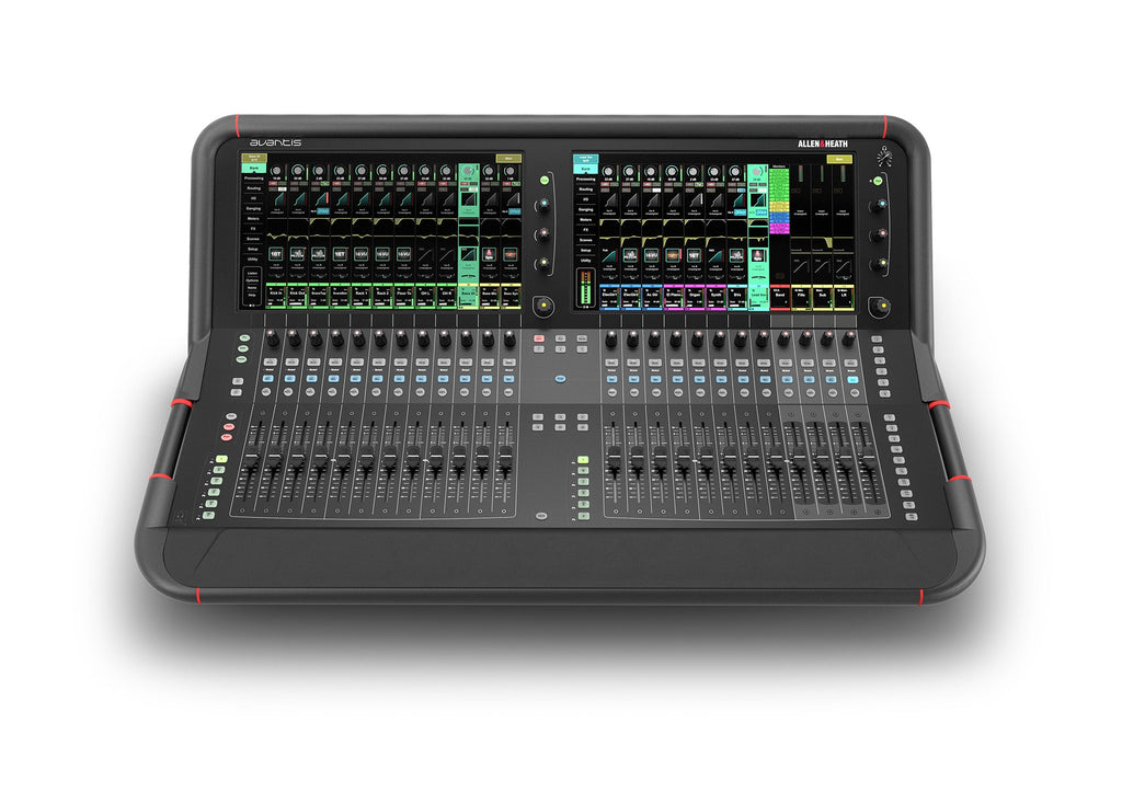 The 64 channel 42 bus Avantis digital mixer is the third offering in the Allen & Heath 96Khz console series. The Avantis-W-DPACK combines the Avantis console with A&H's powerful dPACK dLive and DYN8 processing software into one out-of-the-box gig-ready board.