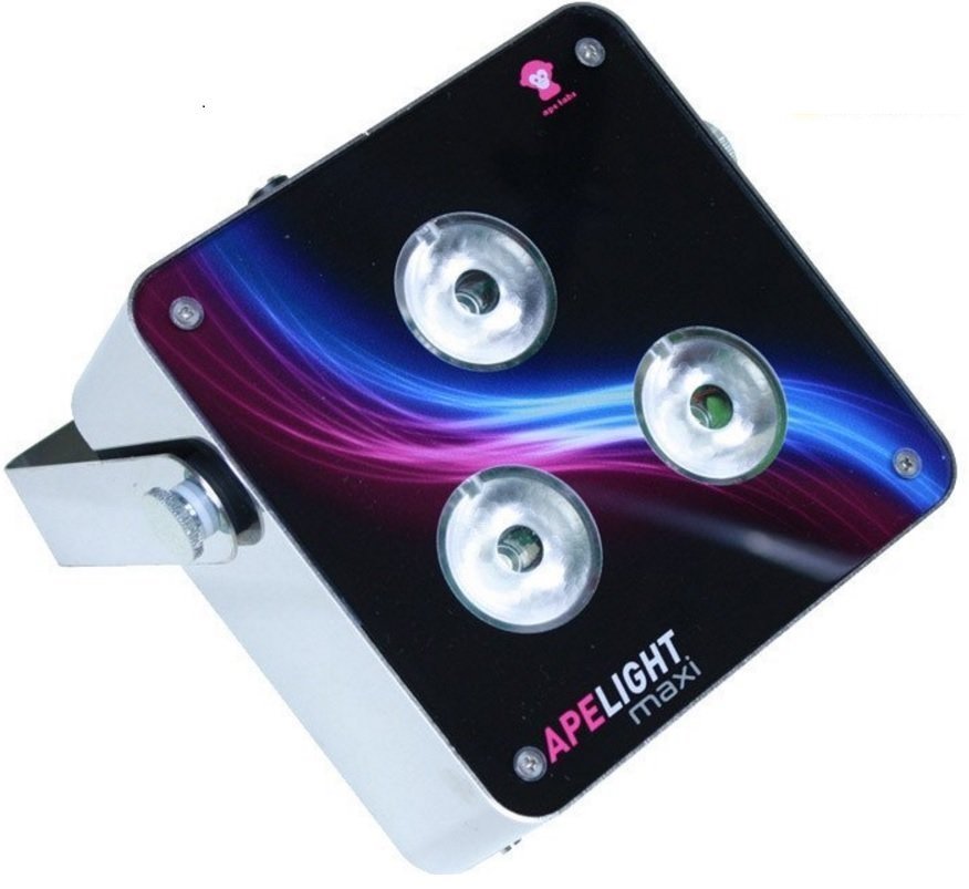 The ApeLight Maxi is a battery-powered LED fixture that can be used for traditional uplighting, stage lighting, wash lighting or as a centerpiece lighting effect.  At only 3.3lbs, this tiny but mighty wash light is super convenient to transport.  But transportation isn't the only thing easy about these lights. MusikMode offers an incredible 1-button intelligent light show. And grouping allows DMX-like programming and simplicity.