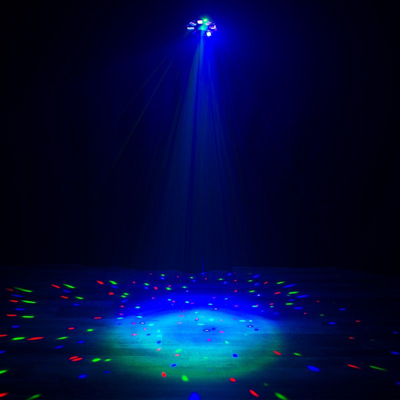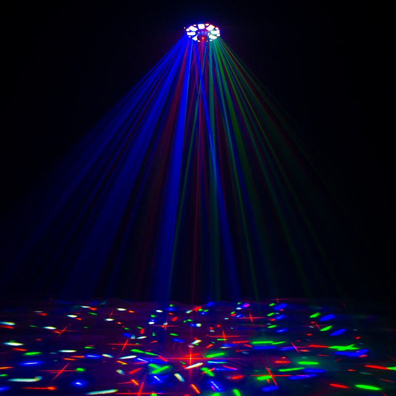 5 effects in 1 fixture3-FX-IN-1 dance party lighting effect: LED Moonflower, Wash and laser effects