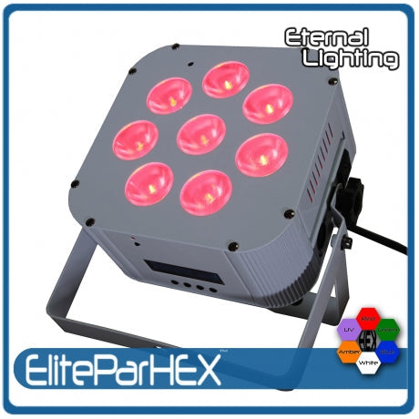 EliteParHEX™ DMX RGBWA+UV Description: *EliteParHEX has (8) 6IN1 RGBWA+UV hex 18Watt LEDs With Wireless DMX Built in! The EliteParHEX is a plug in version of the very popular EchoICON. If you are looking |