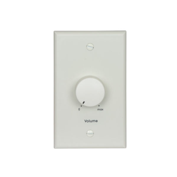 SPECIFICATIONS • Power Rating: 100W • Attenuation: 3dB per step (33dB total) • Use With: 25/70/100V speaker line • Activation: Rotary dial • Volume Positions: 0-10 • Termination: Phoenix-style • Wire Capacity: 14-gauge • Wall Plate: 1-gang standard • Finish: Almond • Fits standard E.O. box (2.125 in. min. depth) |