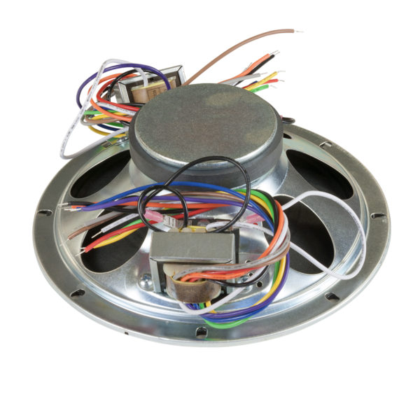 | Single cone driver (8 in. 15W) with dual voice coils and two transformers is made for systems where individual speakers must be connected to two separate or piggy-backed systems, typically used for retrofit applications. IMPORTANT: DO NOT USE this driver when one voice coil is fed from a local or zoned sound system because there will be a cross-talk problem. That application requires two separate drivers. |
