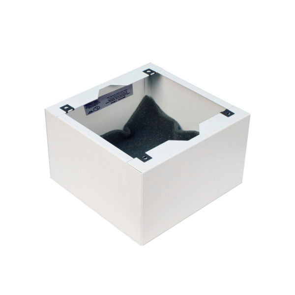 SPECIFICATIONS • Material: 20-gauge steel, welded seams, white finish • Height: 7.13 in. • Width: 7.13 in. • Depth: 4.25 in. • Volume: 0.125 cu.ft. • Acoustical Treatment: 0.25 in. foam pad • Mounting Aids: Universal mounting pattern for E.O. box (not included), 0.375 in. hole for wire access • For Grille Type: Screw-mount COMPLIANCE & CERTIFICATION • Made in U.S.A. • Certified U.S. steel • UL Listed when used with Lowell Speaker/Grille Assembly No. ULT-SG4-CT572 A&E SPECIFICATIONS The surface-mount backbox shall be Lowell Model CB44, which shall be fabricated of 20-gauge steel and lined with a 0.25 in. thick foam pad. The rear shall include provisions to mount a 4 in. square, 4 in. octagon, 2-gang or 1-gang E.O. box (not included). The rear shall also have a 0.375 in. diameter hole for wire access. The backbox shall measure 7.13 in. square x 4.25 in. deep and have a white powder epoxy finish. It shall feature four holes and 8-32 U-clips at flanged corners to accept a square screw-mount grille. |
