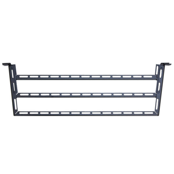 FEATURES • Straight or offset (2 in., 4 in. or 6 in.) • Width: 19 in. • Height: 0.625 in. • Material: 16-gauge steel • Finish: Black • Multiple tie-down slots and holes • Straight bar can be used alone or mounted at a right angle to another straight bar for dual-lacing configuration • Offset bars are stackable on a horizontal plane to save rack space COMPLIANCE & CERTIFICATION • Made in the U.S.A. • Certified U.S. steel