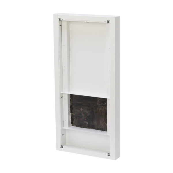 SPECIFICATIONS • Material: Steel • White • Size: 18.85 in. x 39.125 in. • Depth: 3.06 in. • Vertical channels for wire management • Knockouts CERTIFICATION & COMPLIANCE • Made in the U.S.A. • Certified U.S. steel