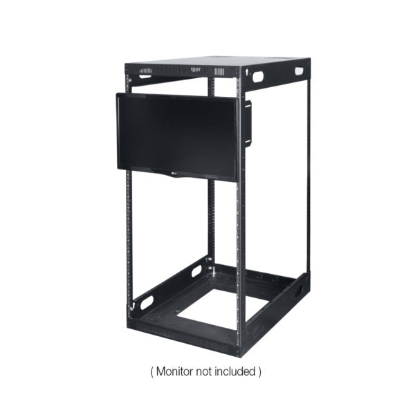 Adjustable-depth display mount for 19 inch E.I.A. two-post and four-post racks, is made to hold a flat panel display or LCD monitor that features a standard VESA 75mm or 100mm hole pattern. The mount is ideal for AV or security installations, control rooms, and similar applications. |