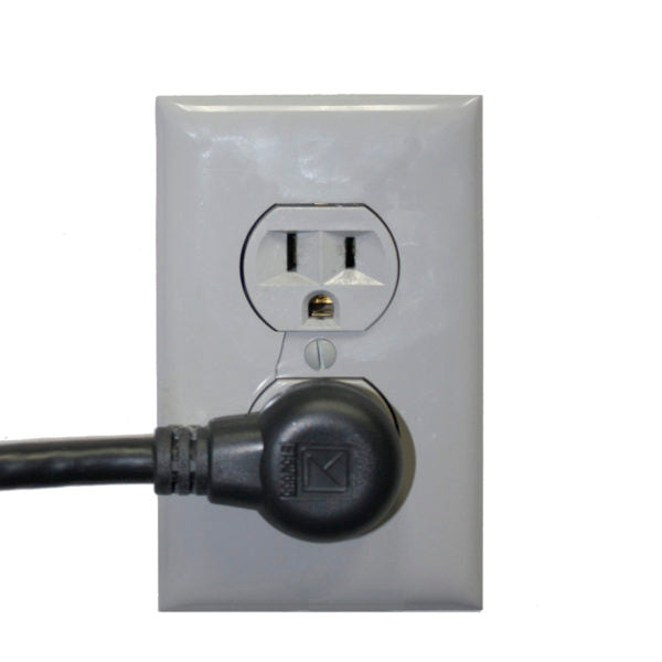 Power cords streamline installations by eliminating excess loops. Features low-profile left-angle plug. |