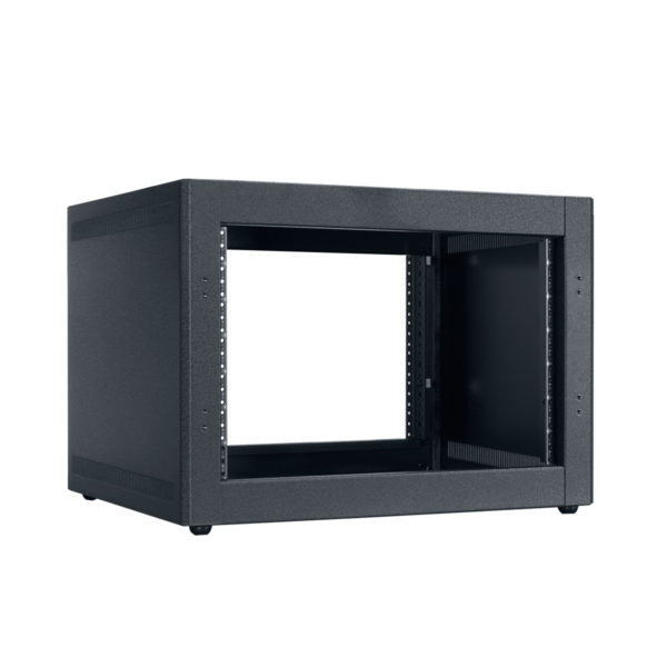 19 inch equipment rack with welded sides, top, and base is ideal for electronics kept on a desktop. Includes rubber feet to protect desktop. |