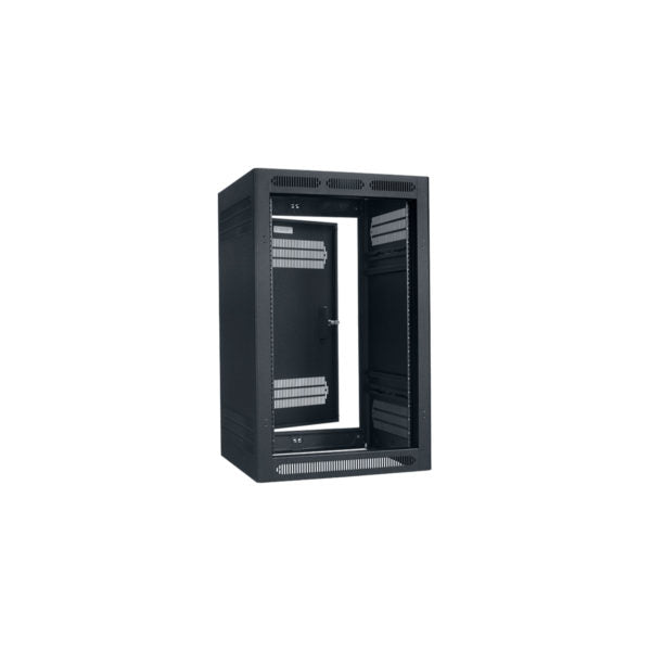 18U x 22"D stand-alone floor rack with adjustable rails is fully welded 16-gauge steel with 14-gauge base, reinforced at all load-bearing junctions. |