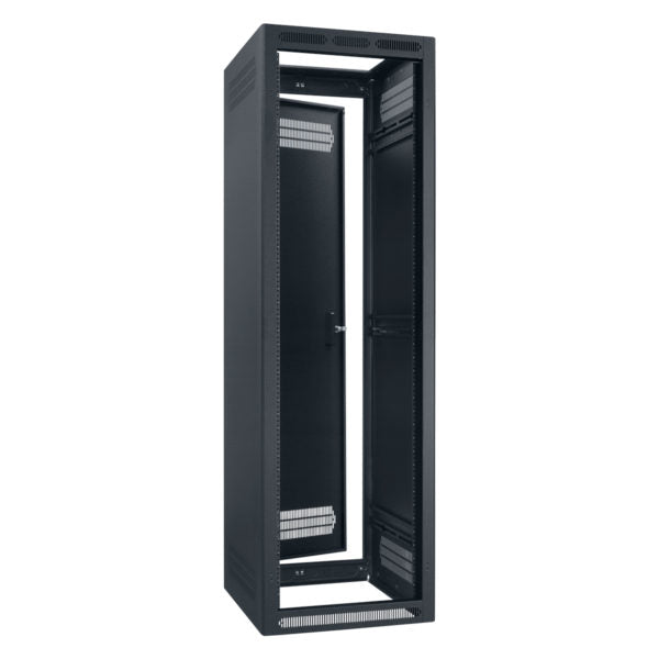 40U x 32"D stand-alone floor rack with adjustable rails is fully welded 16-gauge steel with 14-gauge base, reinforced at all load-bearing junctions. |