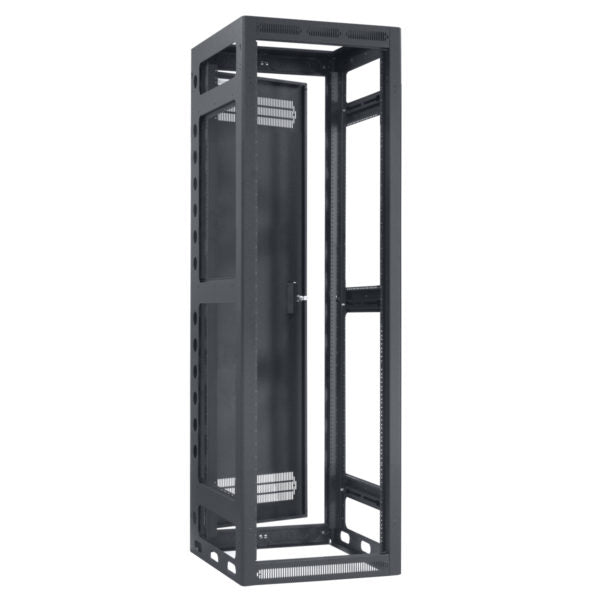 Gangable rack with adjustable rails is fully welded 16-gauge steel with 14-gauge base, reinforced at all load-bearing junctions. |