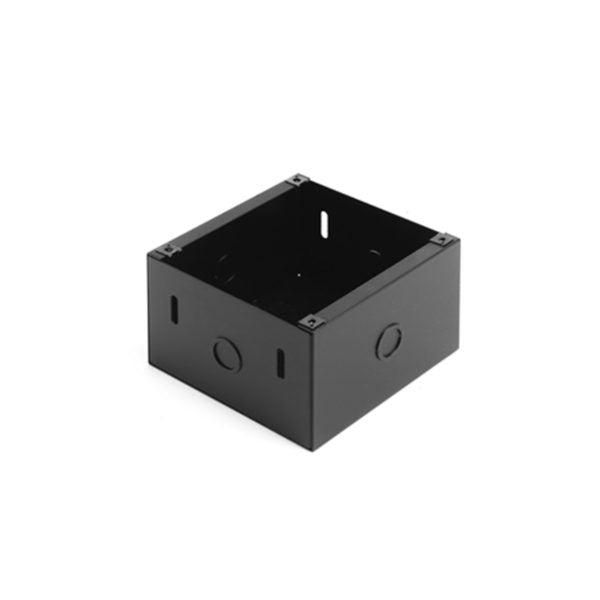 | Recessed backbox with black finish with slots for depth adjustment is made in the USA. |
