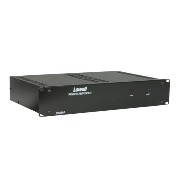| The PA250A power amplifier provides 250 watts of continuous RMS power directly to a 4 ohm speaker load. Switch in rear connects internal 25V/70V output transformer for distributed speaker systems. Use with MA Series mixer-amplifiers to increase power or as all-in-one telephone system paging solution. |