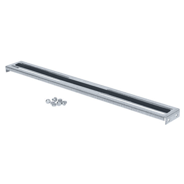 Top clamp secures equipment less than 16.125 in. wide on the RMK Series rack shelf.