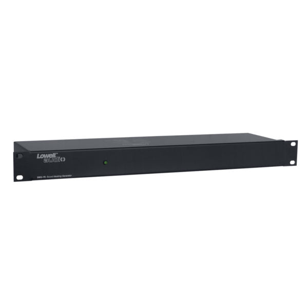 A sound masking generator for rackmount applications produces a noise signal for masking systems that use a separate amplifier to drive the masking speakers. The signal is fed to the masking speakers to produce random low-level background noise to mask ambient noise and improve conversational privacy. |