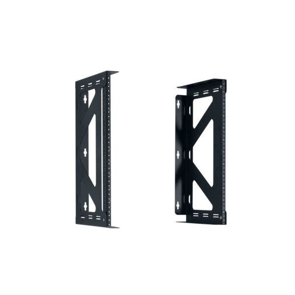 Heavy gauge steel brackets provide a stable platform for patch panels. Mount on wall or backboard (mounting holes on 16 in. and 20 in. centers). |