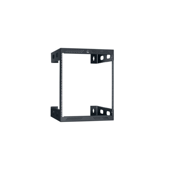 Slim open-frame wall rack mounts 19"W equipment to a wall or backboard. Top and base are heavy gauge steel that can be mounted on 16" centers to form a stable platform for patch panels, routers, switches, telecommunications, or computer equipment. Ships unassembled. |