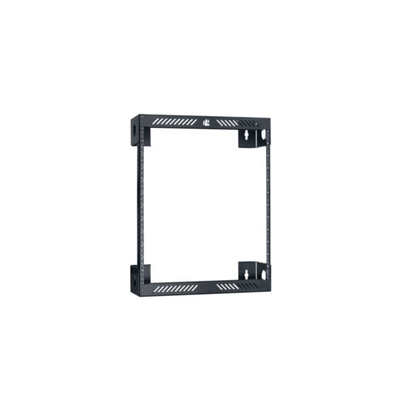 Slim open-frame wall rack mounts 19"W equipment to a wall or backboard. Top and base are heavy gauge steel that can be mounted on 16" centers to form a stable platform for patch panels, routers, switches, telecommunications, or computer equipment. Ships unassembled. |