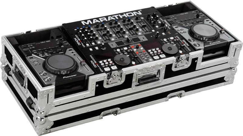 Coffin Holds 2 x SMALL FORMAT CD Players: Pioneer CDJ-200, CDJ-400, Denon DN-S1000, DN-S1200, Numark players plus 19" MIXER with low profile wheels: Holds mixers up to 8U rack space.