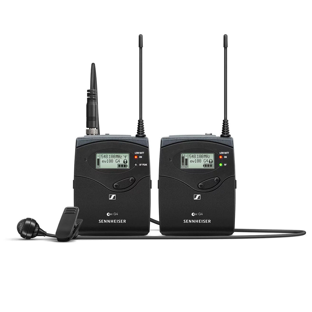 Rugged all-in-one wireless system with high flexibility for broadcast quality sound. Set consists of 1 SK 100 G4 wireless bodypack, 1 ME 4 lavalier microphone, 1 EK 100 G4 portable receiver, output cables, camera mount.